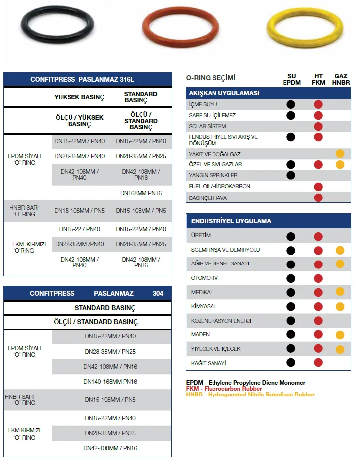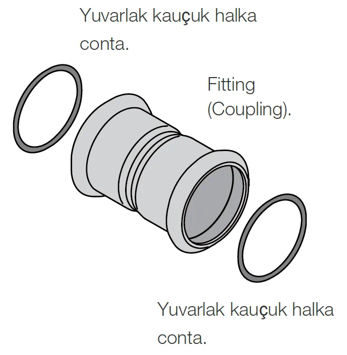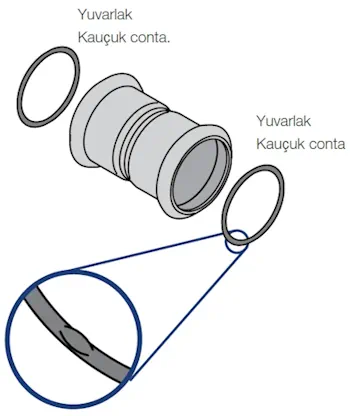 Fitting Bağlantı parçaları, her bir pres soketinde standart olarak EPDM tipi bir halka conta ile birlikte verilir.