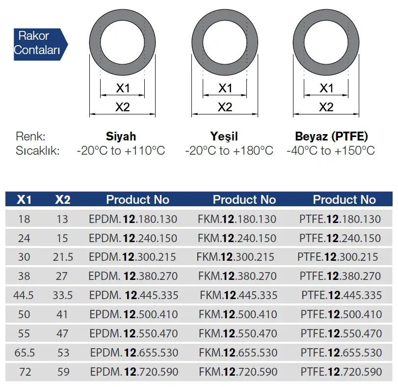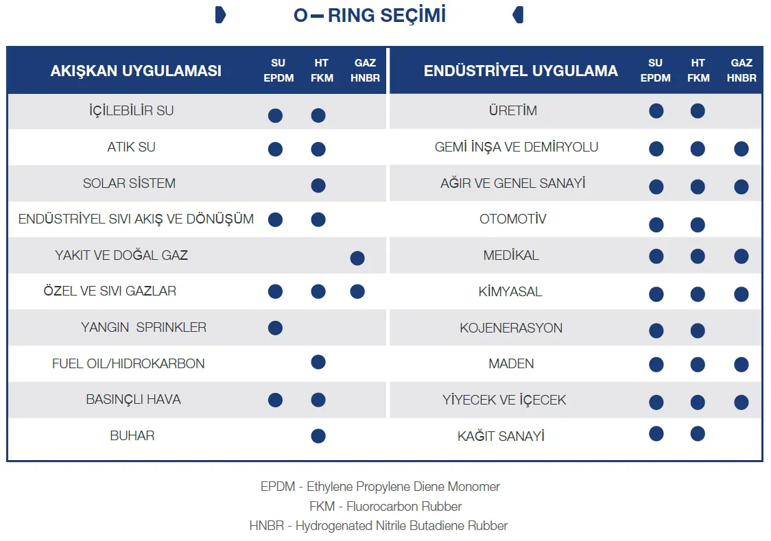 Kullanım amacına bağlı olarak, EPDM halka contanın daha yüksek kimyasal veya sıcaklık direncine sahip farklı bir türle değiştirilmesi gerekebilir.